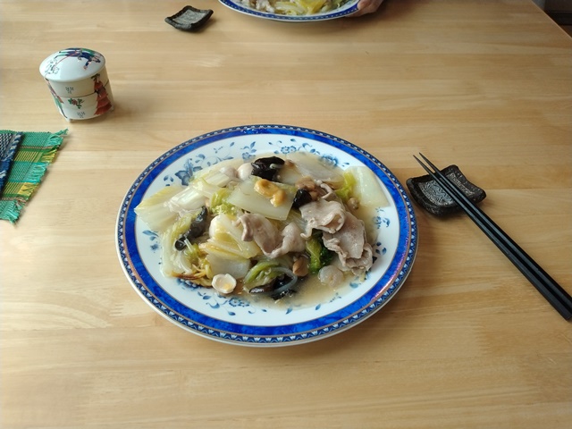 月曜日の10時20分からは2コース分のスペースを使って、インストラクターの付いた水中ウォーキングがあるらしい。陸上ではあまり動けない人でも、跳んだりはねたり出来るのだそうな。いつも通り20分ほど泳いでロッカールームに戻る。家に帰って昼飯の準備を始める。今日は少し寒いからサンマー麺にさせてもらった。野菜と海老やイカを入れて水溶き片栗で仕上げるだけ。食べ終えたらお茶をもらって、午前中の続きに取りかかるのでした。