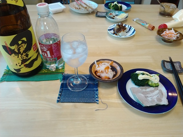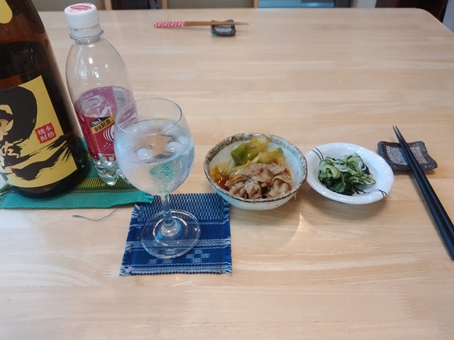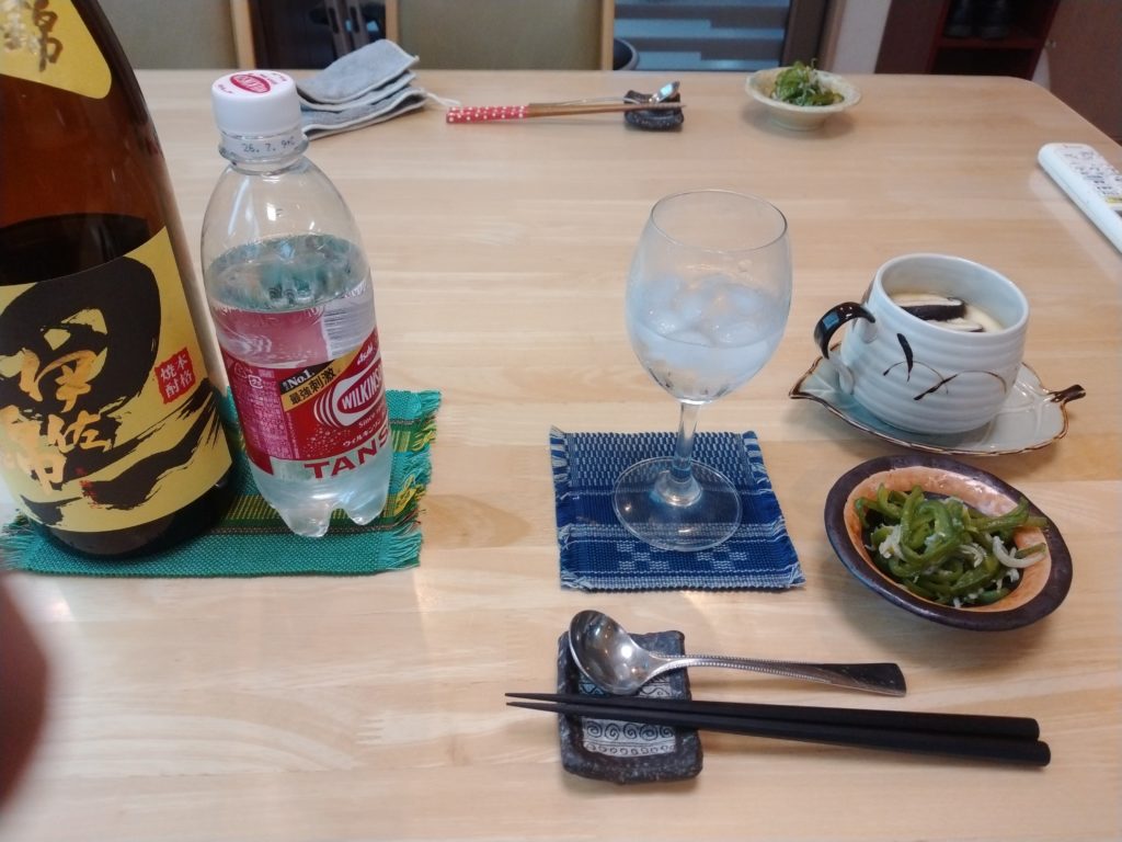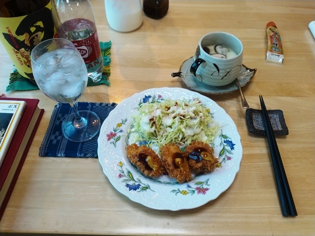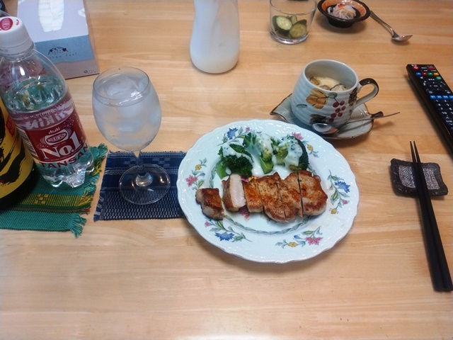 4時半過ぎには小雨の中を女将が帰ってきました。亭主は冷凍の鶏の唐揚げをチーンして、白菜のキムチを小皿に盛って、焼酎の炭酸割りで一杯飲み始めているのです。それだけでは足りなくなって、冷凍の枝豆を解凍してつまんでいたら、5時半近くになってやっとポークソテーが運ばれてくる。茶碗蒸しも出来てこれで夕食のおかずは完成です。とても軟らかい肉で美味しかった。茶碗蒸しも出汁が効いているから最高の味わいなのでした。