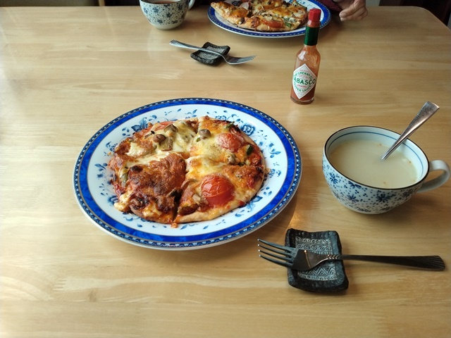 ピザが焼きあがると厨房に香ばしい香りが漂う。出来上がりまで約1時間かかるけれど、途中のオーブンを使う20分ずつは、他のことをしていられるから、暇な老人にはもってこいの調理なのです。子供が小さなころは、女将もパンを作ったりいろいろなオーブン料理をやったものだけれど、二人だけでは買って食べたほうが安上がりなのです。でも、あれほどパンの好きだった女将ももっぱらご飯を食べるようになり、オーブンを使わなくなった。
