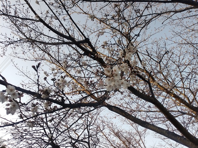 夕べは居間のソファーで寝込んでしまって、10時に目が覚めてこれではいけないと床に入ったのでした。朝に目覚めればもう6時過ぎなのでした。浅い明け方の眠りの中で、女将ともう一人の女性が登場する夢を見て、三人で何か食事をしようと思うのだけれど、どこに行くのか電車に乗ってそのうち目が覚めたのです。暖かい朝なのでした。生ゴミの袋に他のゴミ箱のゴミを入れて、集積場まで運んだら、調整池の畔に咲く桜の花を観に行った。