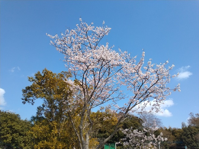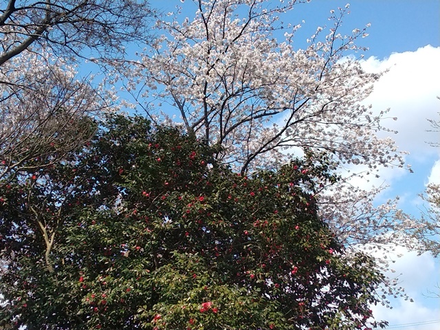 昼飯を食べ終えてひと眠りしたら、しばらくはMLBのドジャース戦を観ていたけれど、このままどこにも出掛けないと、今日は歩かなくなってしまうと、女将と近所の桜を観にでかけるのでした。馬酔木の咲く玄関を出て、ネモフィラと菜の花の咲くお花畑を越え、小学校の坂道まで歩けば、陽の当たるとこにはもう沢山花が咲いていました。晴れてきたので花の色も綺麗に写真に撮れたのです。でも近くから撮るとやはりあまりパッとしない。