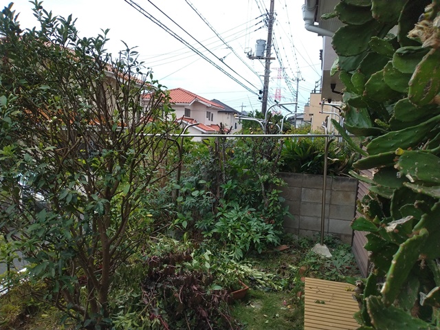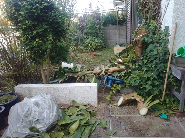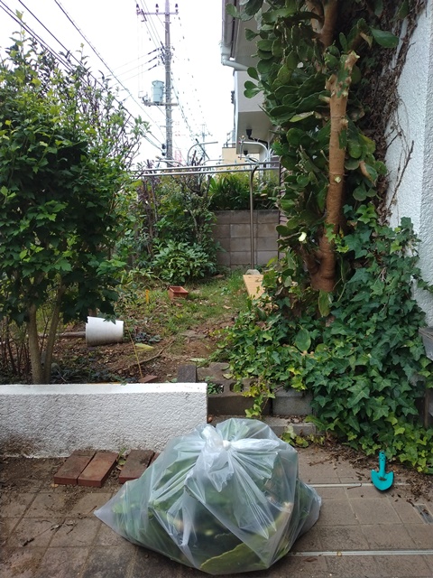 陽も傾いた頃に、表に出て庭の剪定後の様子を眺めれば、やはりウチワサボテンの半分が二階の軒下まで伸びている。明日はこれを切るつもりだけれど、棘は大丈夫だろうか。先日、剪定したばかりの木槿ももう伸び出しているから大変です。今朝袋に詰めた葉を蕎麦屋に運んで、他のゴミと一緒に置いておく。今週はもう4袋にもなっているから、業者に支払う金額もかなり増えそう。無料でも家庭用の市のゴミ袋では大変な量になるから、仕方がないのです。