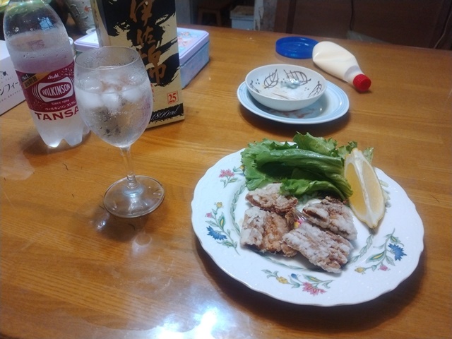 今日はお遣いにも出掛けられそうもないので、二人で隣町の魚屋スーパーに行くことにした。果物と魚を買って、夜はまた活きの好い鰯を手に入れたからと、新しいレシピで料理を作ったようだ。生姜醤油で漬けた鰯に片栗粉を付けて揚げるだけの料理だけれど、いつもの蒲焼きの甘い味つけと違って、檸檬を搾って酒の肴にはちょうど好かった。メインデッシュが出来上がるまでに、亭主は鶏の唐揚げとフライドポテトをチーンして焼酎の炭酸割りを飲み始める。