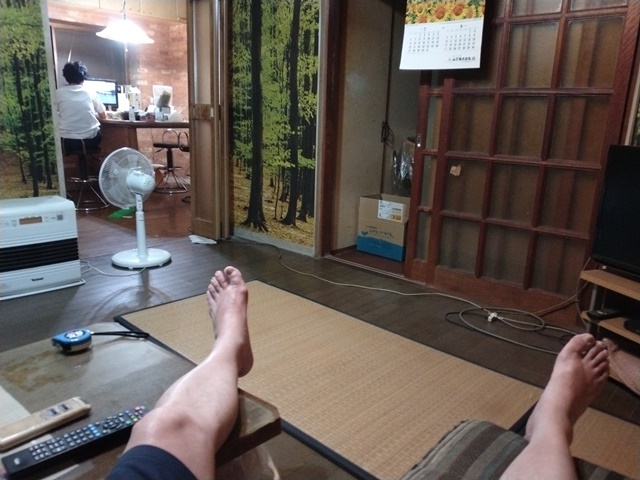 午後は昔釣りで使っていたクーラーボックスを車に積んで、隣町のスーパーに行って、お茶や紅茶などのペットボトルの飲み物を買って蕎麦屋に戻る。午前中に布団を干しておいたので、布団叩きで叩いて奥の座敷に持っていくのでした。クーラーボックスには、家の冷凍室に沢山あった保冷剤を入れて、ペットボトルは冷蔵庫に入れておく。明日は朝から蕎麦屋に来て、業者の来る前に鍵を開けなければならない。日中は奥の座敷で昼寝でもしていようか。
