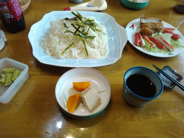 初心者のコースに入って、ゆっくりとアップを始めるのです。10時半からは水中エアロの教室が始まるので、泳げるコースが少なくなる。ちょうど好い頃と思ってプールから上がるのでした。汗を書くほどではないけれど、好い運動になった。更衣室に戻れば、親父様たちが「もう始まるんじゃない?」「38分からなので、急いで家に帰って観るんだよ」とドジャース戦の話をしていた。亭主も家に帰って、食堂のテレビを点けながら、素麺を茹でるのでした。