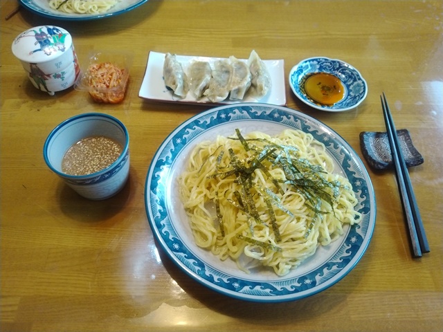 帰りがけに久し振りに一階のスーパーに寄ったら、随分とお客で賑わっているではありませんか。果物を買おうと思ったら、いつも行く隣町のスーパーよりも随分と値段が高いのでびっくり。結局、野菜とざるラーメンや冷やし中華、ピザなどを買って家に帰るのでした。台所に立って二人分のざるラーメンを茹で、餃子を焼いて昼食です。大きなフライパンで焼いた餃子は、今日に限って綺麗な焦げ色が付かないうちに、ピーッピーと火が消えてしまった。