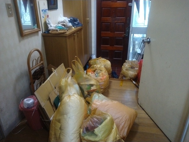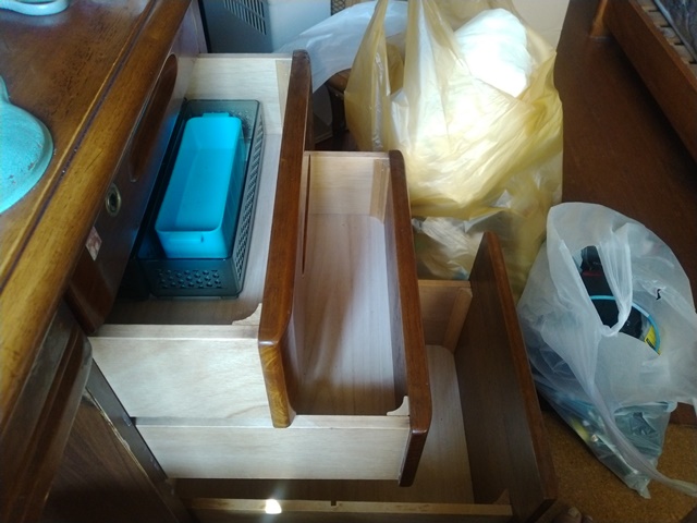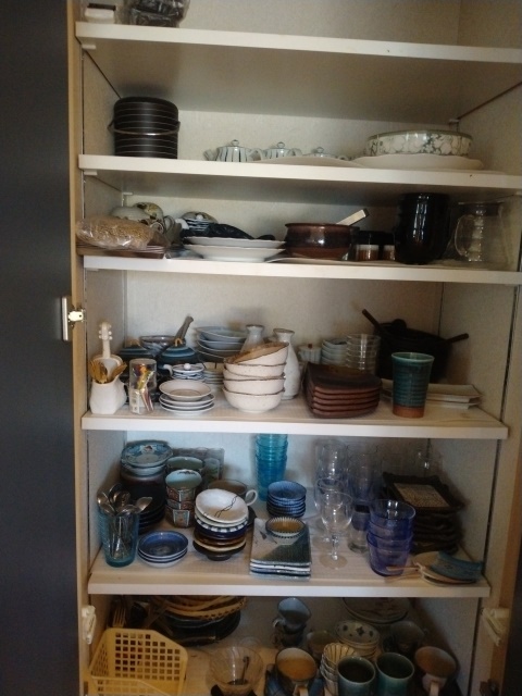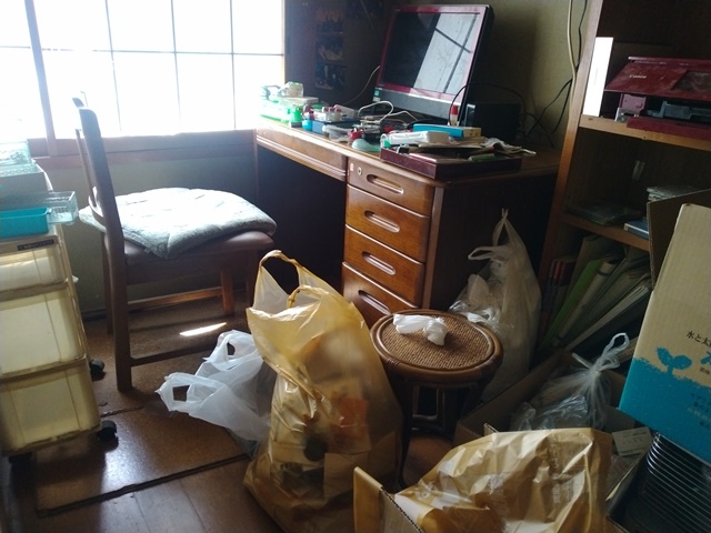 食後は居間の部屋でお茶をもらって、書斎に入ってひと眠りするのでした。30分ほど眠ったら、昨日まわりを片付けた机の中を綺麗に掃除し始める。燃えるゴミと他のゴミとの分別に詳しくない亭主は、いちいち女将に聞きに行って袋をもらって来なければなりませんでした。女将も明日は食器類を出せる日だからと、居間の部屋の戸棚の中のグラスや徳利などを袋に詰めている。亭主も手伝って、11時前にはかなり綺麗に片付いたから、昼飯の支度を始める。