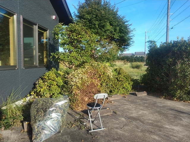 台風が近づいてくるから、雨でも降ったら折角切り落とした枝が濡れてしまう。痛い腰を庇いながら、椅子を出して座りながら、切り出した枝をビニール袋に詰めていきました。昨日は一日蕎麦屋に来なかったから、切った枝の葉は昼の強い陽射しでカラカラに乾いている。それでも、袋に詰めればもう一杯になる分量だつたから、相当切り落としたのでした。家に帰れば食卓には昨日買ってきたヒレカツの卵綴じが美味しそうにテーブルに載っていた。