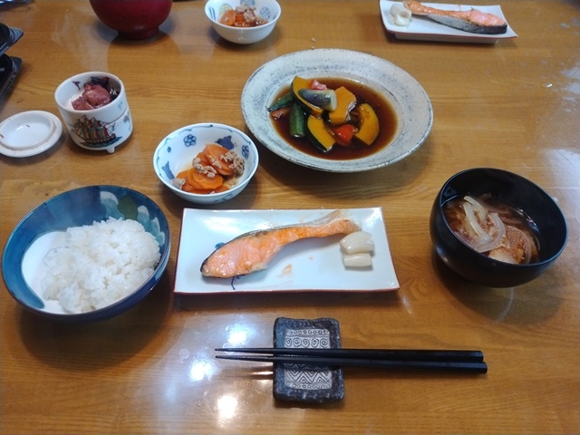 5時前に寒さで目が覚めた。天気予報では24℃になると言っていたから、前日の暑さと湿気と比べると、随分と涼しいのでした。朝飯前のひと仕事は、蕎麦屋に段ボールに入れた机の中身をまずは一つ運んで、先日の誕生会の空き缶や空き瓶を片付けた。クーラーを入れなくても十分に涼しい。冷蔵庫に残っていた紅茶を飲みながら昨日のブログを読み直す。家に帰れば女将が朝食の支度をしているところで、今朝は昨日の残り物に銀ダラの煮付けが出たのでした。