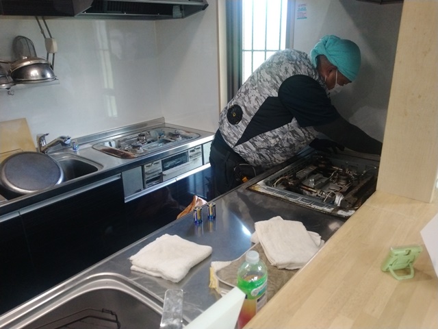 昼食を終えたら午後からガスコンロとガスオーブンの交換に来ると言うので、12時前に蕎麦屋に出掛けて、冷たい飲み物と保冷剤をカウンターに置いたクーラーボックスに入れておきます。1時前に業者と監督がやって来て、いよいよビルトインコンロの交換です。若い職人さんだったから、休憩も無しで2時間ほどでコンロ二つとオーブンを取り替えてくれたのでした。カウンターのこら側から見ていたら、綺麗に周りまで掃除をしてくれていた。