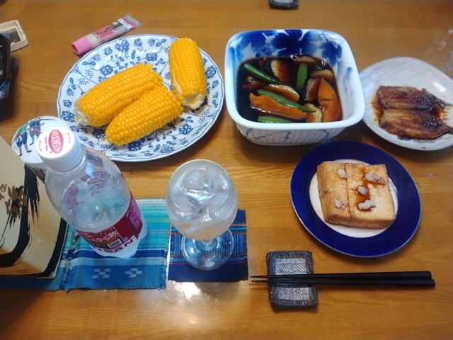 5時を過ぎたらもう食堂に座って、夕食のおかずが出て来るのを待つ亭主。今日は夏野菜の煮浸しと鰯の蒲焼きと厚揚げを焼いて、出してくれた。買って来たばかりのトウモロコシを茹でて美味しく頂くのでした。明日は何をしようか。引っ越しが終わるまでは荷物の搬入があるので、蕎麦屋にはあまりにものを持って行けない。考えたら机も引っ越しでなくなるから、パソコンは早めに移動しておいた方が好い。明日の朝は家の木槿の剪定をする予定なのです。