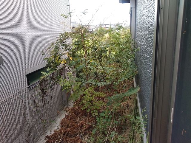 こまめに荷物を運んでおこうと、机の中のものをビニール袋に入れて持って来たので、カウンターの上に並べておく。どれが何処の荷物かが判らなくなってしまいそうで心配だけれど、今は大きな物は持ってこられない。入れ物が運び込まれて初めて中身が必要になるのです。ついでに引っ越し後にやらなければならない仕事の一つの南側の庭の様子を見ておく。下の家が出来る前は、陽当たりも好く畑を耕して随分と野菜も収穫したのですが、今はタラの林…。