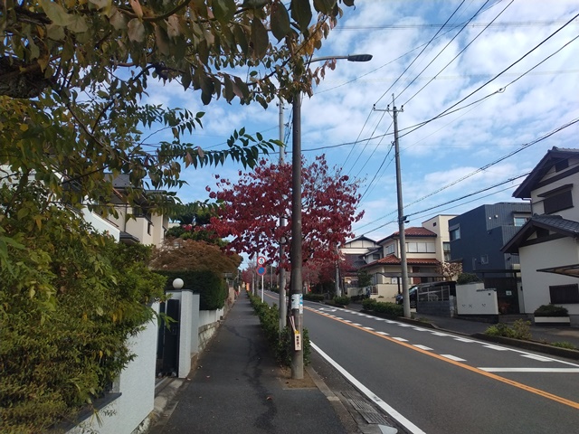 びっくりしてを覚ましたけれど、まだ頭は働いていなかった。こんな日は一日中ぼうっとしていることが多い。それではいけないと昼食の前に外に出て近所を歩いて来るのでした。女将も先に玄関を出て、亭主とは反対の方向に行ったから、隣のコスモス畑に出る森の道を歩くのだろうか。一人では心細い道だけれど、怖い物知らずなのですね。亭主は西の階段を下りて女将とは逆に、広いみずき通りの方へと歩いて行くのでした。青空にだいぶ雲が出て来た。