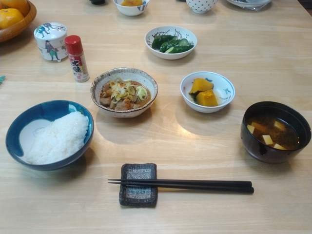 お袋様の住むマンションの坂道を登って、我が家の隣のコスモス畑まで来れば、もう家はすぐそこなのです。2600歩。やはり1.5kmは歩いた計算です。家に入れば女将が厨房に入って朝食の支度をしていた。今日は鮭の塩焼きにピーマンのじゃこ和えとキュウリの糠漬けがおかずのでした。7時半に朝食を終えて、女将が入れてくれたお茶を飲む。これからいよいよ洗面と髭剃りなのでした。女将が朝ドラを見ている間にトイレを済ませ、ここまでブログを書く。