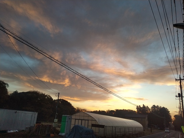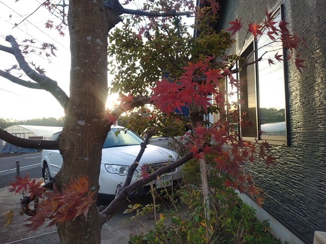 夕べは10時半に寝て、今朝は5時半に起床。7時間も眠ってすっきりと目が覚めたのです。6時に東の空を見たら雲が赤く染まっていたので、急いでスマホのカメラを取りに戻って朝焼けの空を撮るのでした。日の出はそれから15分ぐらい後なのです。朝食の前に生ゴミを捨てに西の小径の階段を下りて、下の通りにある集積場まで運んで行く。近所の親父様が車のトランクに生ゴミを積んでやはり運んで来たのです。帰り道、駐車場のモミジをみれば最後の赤…。