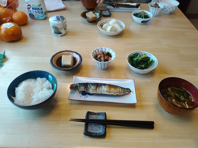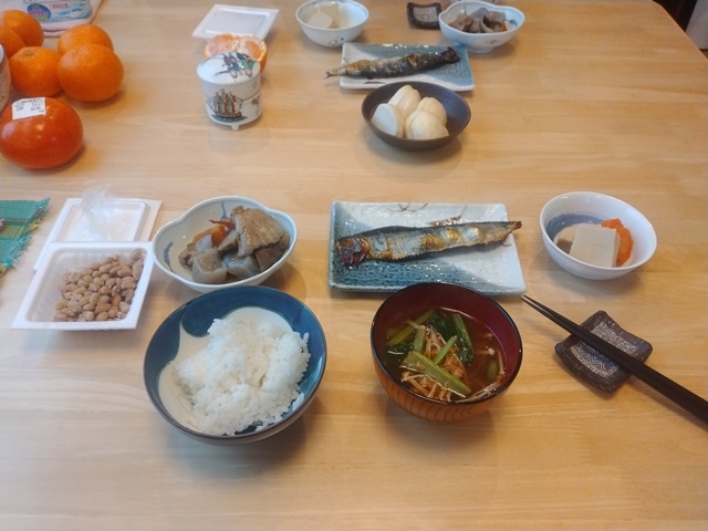 夕べも9時半には床に就いたので、3時前には目が覚めてしまいました。前日の睡眠時間帯が翌日にもまた影響しているようです。仕方がないからコーヒーを淹れて、暖房を入れようと温度計を見れば、室内の温度は16℃とかなり暖かいのでした。寒くなると毎日のように予報で言っているけれど、明日からなのだったか。5時過ぎまで起きていたけれど、また眠くなってベッドに潜り込む。朝食前には起き出して、女将の作る料理をテーブルに運ぶのでした。