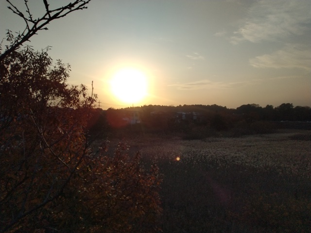 今日のブログを書きながら、疲れては休んでテレビの映画を観るという繰り返しで、なんとか昼飯の写真まで進んだ。お袋様が使っていない小さなポットがあったら欲しいと言っていたのを思い出して、ポットを持ってお袋様のマンションまで歩く。今日買って帰った食材を、調理して多べられるようにし終わったところらしく、食堂のテーブルの上には沢山のタッパが並んでいた。「足が悪いのにわざわざ悪かったねぇ」と言って迎えてくれた。亭主は散歩がてらのつもりだから、一向に気にしていないのです。調整池に沈む夕陽が眩しく、ススキの穂がきらきらと輝いていたのでした。