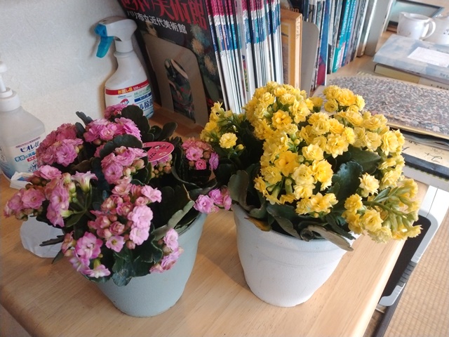 女将のいないうちにと、午前中に下見した地階のスーパーのすぐそばの店で、黄色とピンクのカランコエを買って来る。しかし、家で調べたら花の咲く時期は長いけれど、冬の寒い時期は外に置いておけない花なのでした。調べたら初心者向けと出ていたので、少し増やして植木鉢で育てれば好いかと思った。女将の帰ってくるまでこのブログを書いて時間をつぶすのです。今日の夜はホウレン草と豚肉とで常夜鍋に出もしてもらおう。酒の肴には蛸も買って来た。