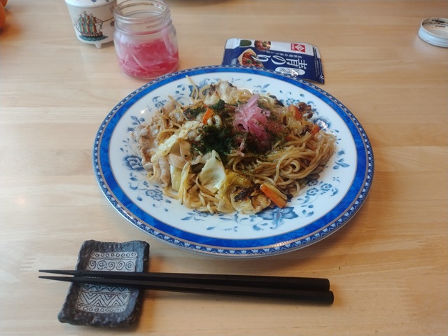 家に帰って一服すればもう11時になっていた。今日はソース焼きそばの予定だったから、キャベツとシメジと人参を入れてチーンした焼きそばを入れてフライパンを振れば、わずか5分で出来上がりです。ニンジンを女将が茹でてくれてあったのが好かった。食後は女将がスポーツクラブに出掛け、亭主は1時間だけ昼寝をする。買い物をした中に骨付きの豚肉があったのだけれど、値段を見間違えて2600円もする高いものを買ってきてしまったから大変でした。