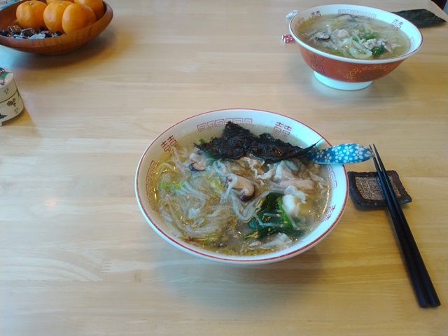 10時を過ぎた頃に先日の約束通り、向かいのサツマイモ農園の若旦那と若い衆がやって来て、懸案の冷蔵庫を二つ持って行ってくれた。広くなった厨房と書斎は使い勝手が好さそうなのです。昼飯の準備を始めて、今日のお昼はあんかけ焼きそばにすることにした。レンジでチーンした蒸し麺を油で炒めて、しっかりと焦げ目が付いたら、白菜と人参、オクラを切って海老と烏賊とキクラゲを水で戻し、肉を入れてよく煮る。水溶き片栗をいれてあんかけにする。