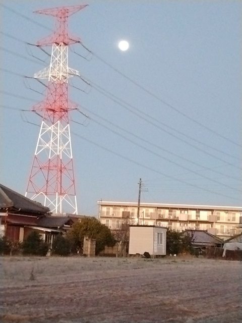 5時半になったらブラインドを上げて、森の向こうの薄明かりが見えたから、今日も晴れるに違いないと西側の窓のブラインドを上げる。思った通り今日は満月が西の空に傾いていくのでした。6時過ぎには新聞を取りに外に出て、一面に霜の降りた隣の畑と満月を写真に撮る。外の気温はマイナス4度。もう一度眠りたかったけれども、朝食まで頑張って起きていたのです。昨日の残りのビーフシチューをおかずにご飯を食べ、熱いお茶をもらったら身体か暖まる。