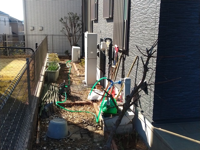 食事を終えてひと休みしたら、女将はスポーツクラブに出掛けていく。亭主は散歩でもしようと外に出て、元の家に向かって歩き出す。ひょっとして姫水仙の芽が出ているかも知れないと、淡い期待を胸に出掛けたのです。果たして金柑を掘り起こした大きな穴の脇には、塀際に沿って新しい芽が沢山出ているのでした。これがあの黄色い花を付ける姫水仙に違いないと、捨ててあった壊れたシャベルで掘ること1時間。根がしっかりと張っていたから大変でした。