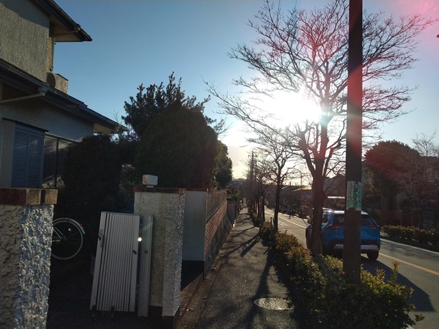 食後は奥の寝室に入ってひと眠りしようかと思ったけれど、今日はたいして動いていないので眠くならないのでした。テレビで映画の『アクアマン』を観てウトウトしていたら、女将が美容院に出掛けると玄関を出ていった。亭主もそろそろ散歩に出ないと、夜がまた眠れなくなるのではと考えたのです。買い物だけではまだ700歩しか歩いていない。防寒の支度をして、みずき通りの陽の当たる坂道を下っていきました。いつもよりもっと長く歩いて右折する。