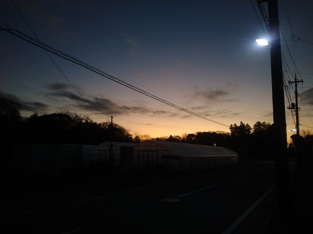 今朝は明け方に暖房を入れて部屋の温度が15℃だったから、いつもよりは少し暖かく目覚めたのでした。タイマーでスイッチを入れることも出来るけれど、どうも設定が億劫でなかなかする気にならない。まだ暗い居間の部屋に行ってブラインドを上げる。少しずつ日の入りの時刻は遅くなっているけれど、日の出の時間はあまり変わりがない。ただ辺りが明るくなる時間は早くなっているような気がするのです。写真は6時20分の東の空です。