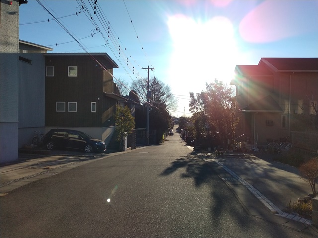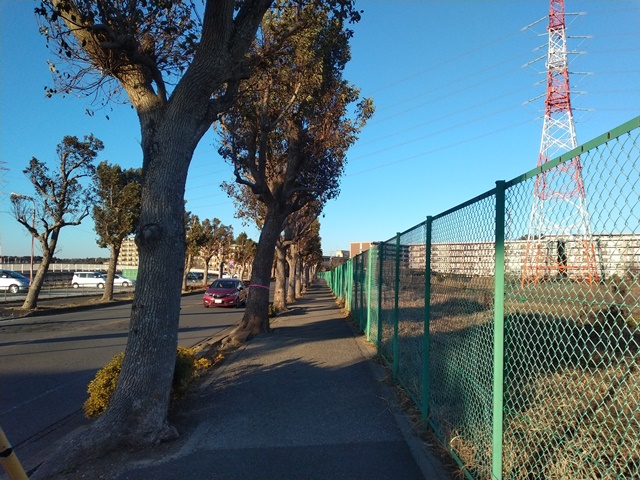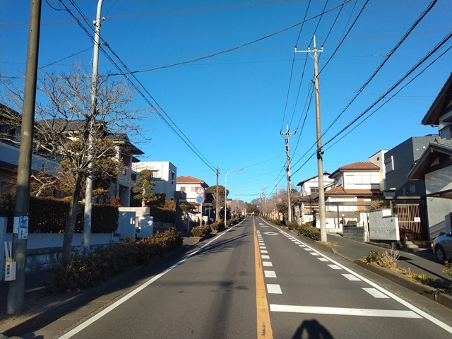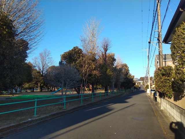 ちょうど公園の終わるところに出て、遙か向こうには我が家のある高台が見える。ここで曲がればすぐ家に着いてしまうからと、更に頑張って進めば、昔、夜の防犯パトロールで歩いた一角に出た。突き当たりを右に折れてまっすぐ行けば、調整池を周回するいつもの散歩コースに戻るのでした。だいぶ陽も傾いて南風が吹き抜ける場所だったから、少し寒かったけれど今更戻るわけにも行かない。お袋様の住むマンション群を抜けて家の前のバス通りまで歩いた。