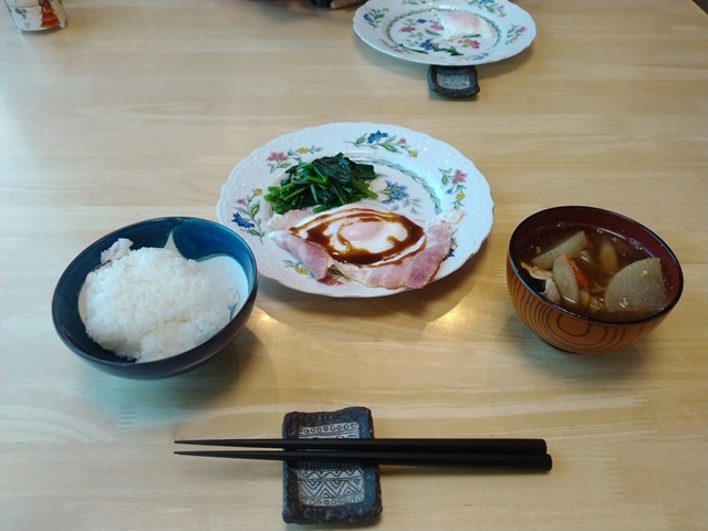 朝食は魚も肉もなくなったから、ホウレン草のバターソテーにベーコンエッグと豚汁。美味しく頂いて食事を終えるのでした。洗面と着替えを済ませ、少し早かったけれどお袋様に電話をして、マンションまで迎えに行くのでした。農産物直売所では顔見知りの農家のご主人が大根やホウレン草を運び込んでいました。どちらも頂いて、隣町のスーパーに出掛ければ、三連休の最終日だというのに今日も駐車場は随分と空いていました。やはり寒さで出足が遅いか。