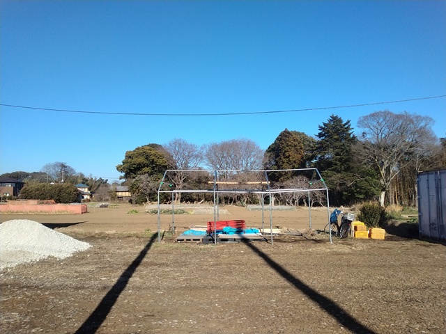 向かいのサツマイモ農園では、やはりテントのビニールはすべてはぎ取られて、鉄のパイプの骨組みだけになっていた。中に入っていた物は、建物の中に運ばれたらしい。お蔭でその向こうにある景色が戻ったのです。この風ではとても散歩には出れないし、夕刻までの時間をどうやって過ごそうかと考えてしまう。女将が厨房を使い終わったら、返しを作っても好い。味醂やワインビネガーが残っているだろうか。買いに行かなくてはならないかも知れない。