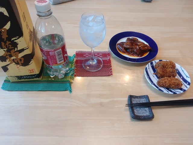 家まで帰れば万歩計は3800歩になっていた。いつもの調整池の周りを歩くよりはずっと多い。暖かい家に入ってすっかり寛ぐ亭主。女将が帰ってくる前にと、4時半を過ぎたら小鉢の用意をして、焼酎、炭酸、氷のしたのでした。小鉢を肴にして酒を飲み始めたら、女将が今日買った鰯の蒲焼きを作るというので、亭主の分は甘辛誰を付けずに焼いてもらった。これに醤油を垂らして食べたら、絶品の味わいなのでした。今日も無事に終わって好かった。