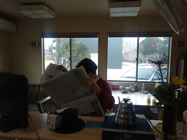 やっと睡眠時間が元に戻って、昨日は10時半に床に就いて今朝は6時過ぎに目が覚めました。風もおおかたは収まって、明るい青空が開けて東の森の向こうから陽が昇るのでした。気温は低くまた真冬に逆戻りで、湿度も低いから畑には霜も降りていない。女将が起き出して来て厨房に入ったら、もう朝食の支度をしてくれる。亭主はテレビも点けずにまだ煙草を吹かしているのです。今日の予定を考えると、お袋様と買い物に出掛け、業者の対応をすればいい。