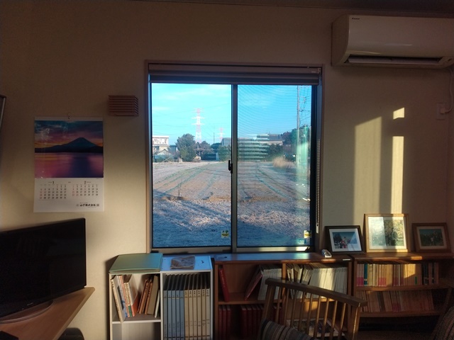 昨日は朝のひと眠りも昼寝もしなかったのに、夜は11時まで起きて酒を飲んでいた。寒いから焼酎のお湯割りを飲んだら、目が覚めてしまってパンを焼いてバターで食べる。眠りは安らかに朝の6時までぐっすりと眠ることが出来て、朝食前にコーヒーを入れてプラゴミを集積場まで運ぶのでした。畑には白く霜が降りて、家の野菜や冬の花などはもう枯れそうなのです。今年は雨が降らないからかよほど乾燥しているようなのです。珍しく日の出の写真が撮れた。