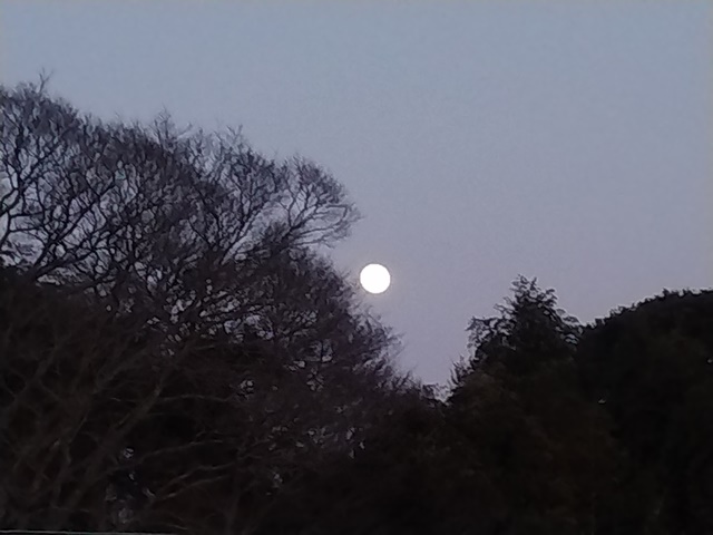 食卓に夕飯のおかずが並ぶ5時過ぎには、向かいの森の木の枝の隙間から、ほぼ満月に近い次が昇って来ました。女将と二人で昇る月を見ながら夕食を食べるのもまたおつなものなのです。西の空はもっと明るく夕焼けが綺麗で、随分と日が長くなったと思うのでした。蕎麦屋の店舗だった居間のつくりを有り難く思う。明日はお袋様と買い物に出掛けて、「何を買ってこようか」と女将に尋ねれば、「魚は朝に食べる銀ダラで終わりです」と言うのでした。