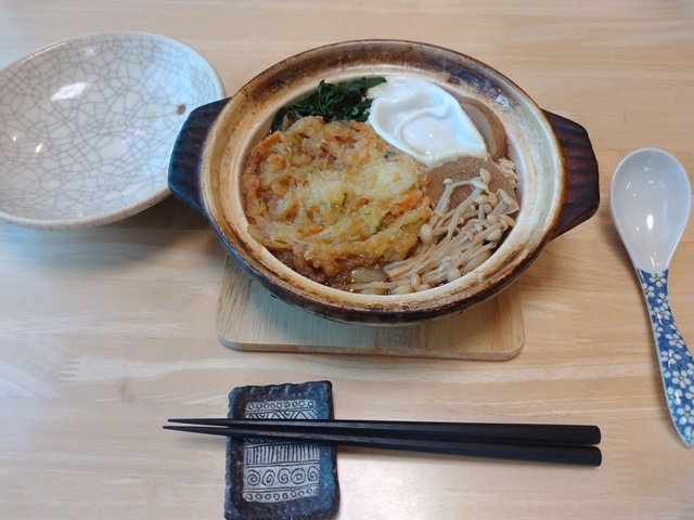 玄関を入ればもう4時半を回っている。急いで厨房に入って、女将のリクエストの鍋焼きうどんを作るのでした。引っ越しで鍋焼きの鍋を捨てたのかと思っていたら、二つだけは取ってあったらしいので、それを出してもらって蕎麦汁を入れる。うどんを茹でて具材を載せ、最後に卵を入れて蓋をすればもう出来上がりなのでした。久し振りに食べる料理だから二人とも美味しいと言いながら、身体が暖まるのを喜ぶのでした。酒は飲まなかったけれど…。