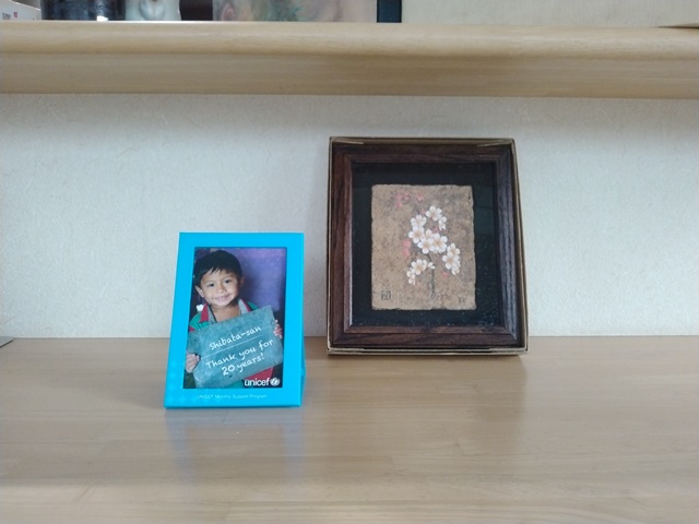 UNICEFから届いた感謝状は”shibata-san Thank you for 20years”と書いた板を子供が持っている写真でした。20年前の自分はやっと管理職になった頃で、我が家の子ども達もそれぞれに所帯を持って暮らし、気持ちにも余裕があったのだろうか。今になって思えば、愛犬ペコや愛猫小次郎がいた時代も、それほど昔のことではないのに何か随分と昔のような気がするのです。パソコンに入力した写真の日付が唯一の記憶の頼りで、記録に撮っておくのは大切だと思う。