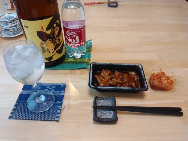 4時を過ぎて女将は厨房から自分の部屋に引っ込んでしまう。亭主は晩酌の準備をするにはまだ早すぎると、パソコンに入っている昔の写真を見て懐かしさに浸っている。4時半になったら、もう好いだろうと、今日買ってきたローソンの「こてっちゃん」と昨日ショッピングモールで買った「ごくうま」というキムチを冷蔵庫から取り出して、焼酎の炭酸割りの準備を始めるのでした。皿を使わないから好いのだけれど、何かちょっと風情がないのです。