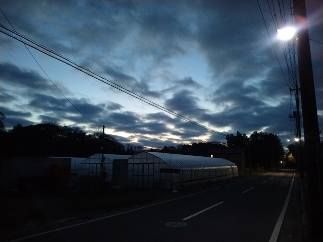 燃やせるゴミの袋を集積所に運んで、西の小径から駐車場を眺めれば、朝日の昇る時間に東の空は雲に覆われていました。天気予報では氷点下の気温と言っていたけれども、隣の畑には霜は降りていなかった。夕べは9時半に床に就いたのは好かったが、12時半には目が覚めてしまう。居間の部屋はかなり気温が下がっていたので、珍しくストーブを点けて暖まったのです。『スパルタカス』という映画が始まっていたので、最後まで観てからまた床に入ったのです。